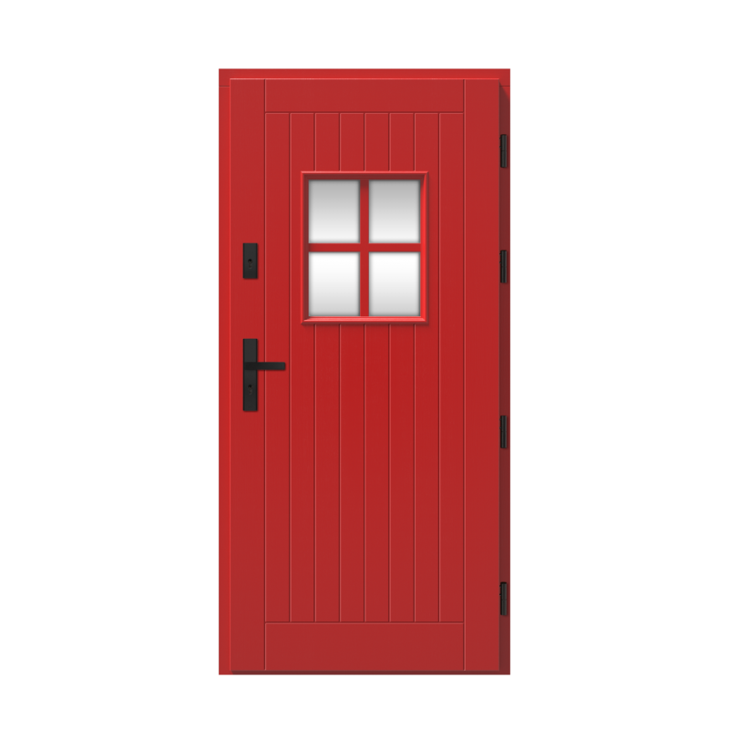 · Rám dverného krídla je vyrobený z borovicového alebo dubového dreva lepeného vo vrstvách, vystuženého oceľovým „C“ profilom 40x20mm.