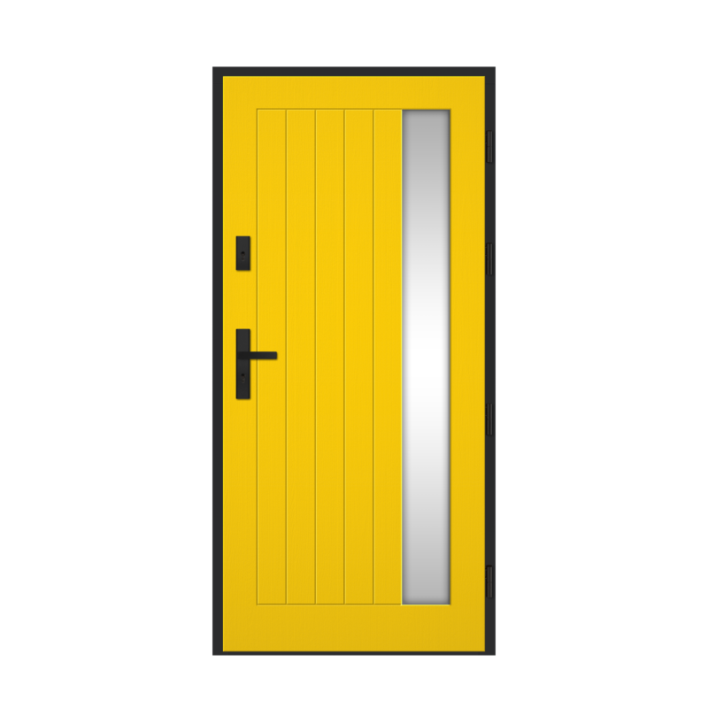 · Rám dverného krídla je vyrobený z borovicového alebo dubového dreva lepeného vo vrstvách, vystuženého oceľovým „C“ profilom 40x20mm.