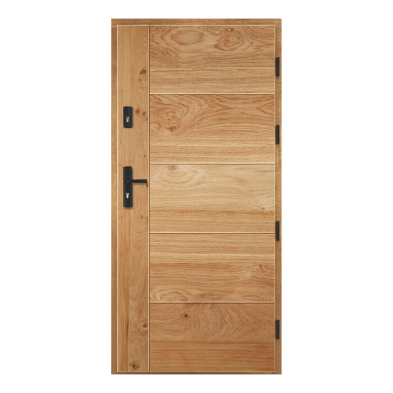 · Rám dverného krídla je vyrobený z borovicového alebo dubového dreva lepeného vo vrstvách, vystuženého oceľovým „C“ profilom 40x20mm.