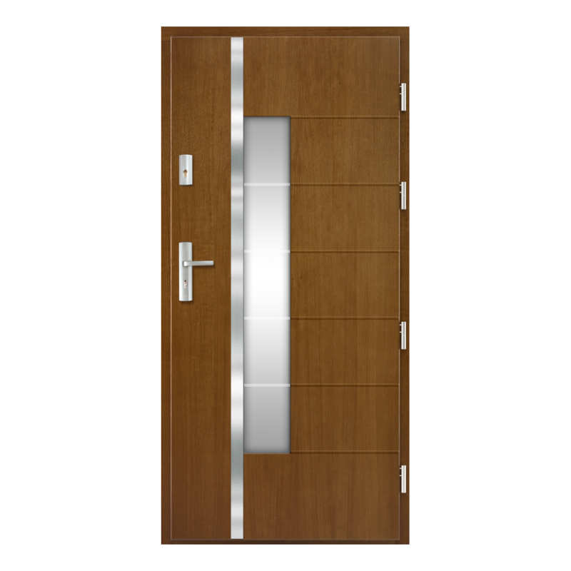 · Rám dverného krídla je vyrobený z borovicového alebo dubového dreva lepeného vo vrstvách, vystuženého oceľovým „C“ profilom 40x20mm.