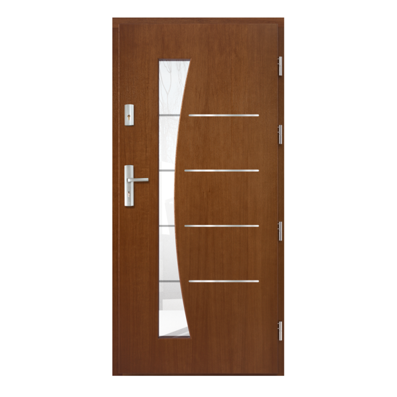 · Rám dverného krídla je vyrobený z borovicového alebo dubového dreva lepeného vo vrstvách, vystuženého oceľovým „C“ profilom 40x20mm.
