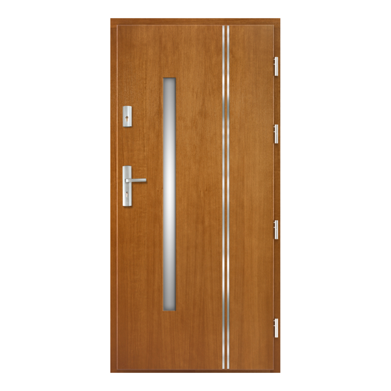 · Rám dverného krídla je vyrobený z borovicového alebo dubového dreva lepeného vo vrstvách, vystuženého oceľovým „C“ profilom 40x20mm.